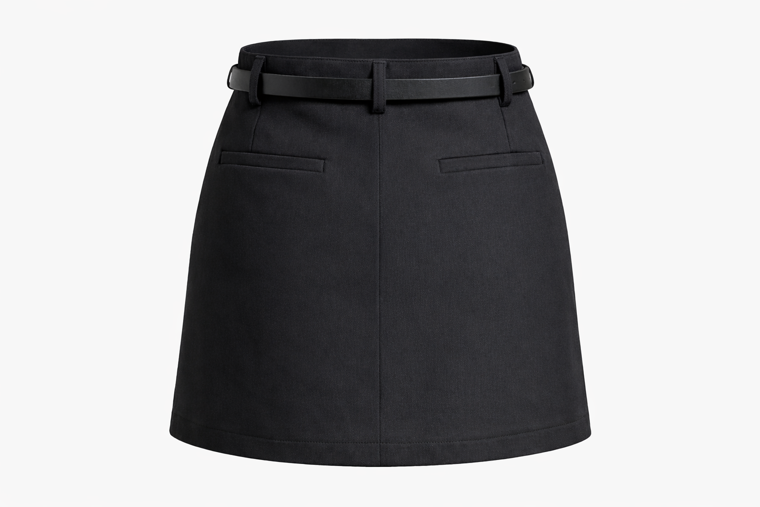 Juodas mini sijonas–šortai su kišenėmis ir dirželiu